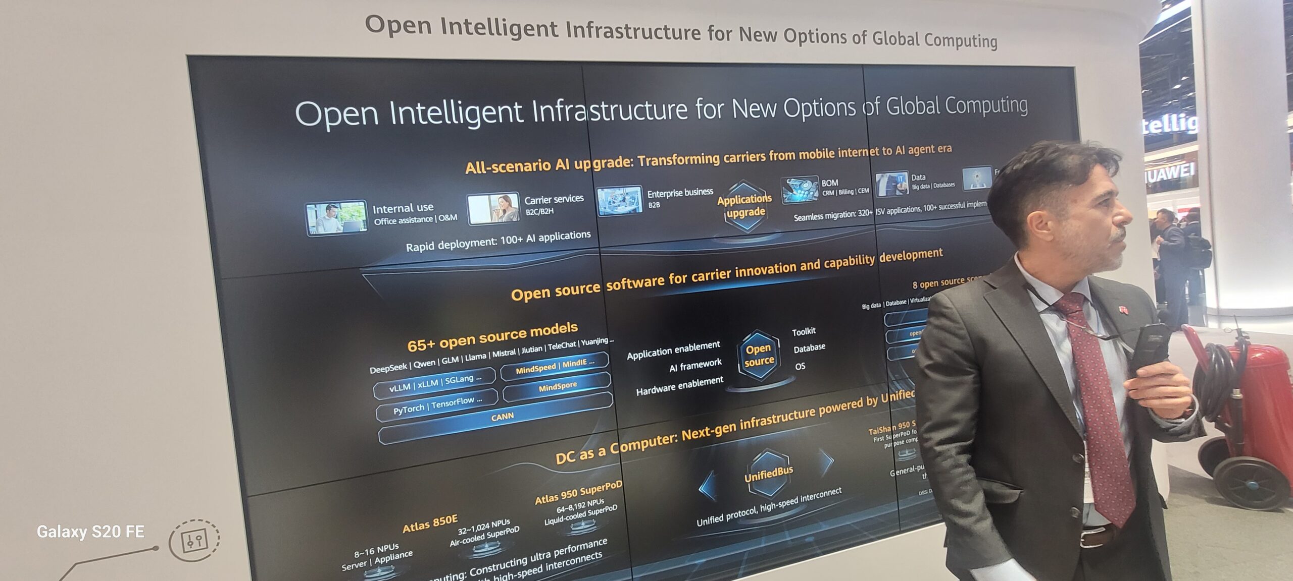 En la zona IT del stand, Huawei muestra una infraestructura tradicional IT (servidores, almacenamiento, sistemas operativos, bases de datos). Y una infraestructura optimizada para inteligencia artificial. La compañía refuerza, además, su apuesta por el open source, con contribuciones como la comunidad OpenEuler, el sistema de gestión de bases de datos OpenGauss y herramientas abiertas de desarrollo para IA. No en vano, la compañía acaba de anunciar el proyecto de código abierto para el protocolo de soporte A2A-T (Agent-to-Agent for Telecom). Una iniciativa que busca acelerar la adopción global de estándares de comunicación entre agentes con grado telecom ,mediante un modelo de colaboración abierta, con el objetivo de sentar las bases de una Internet “agentica” abierta, colaborativa y próspera.