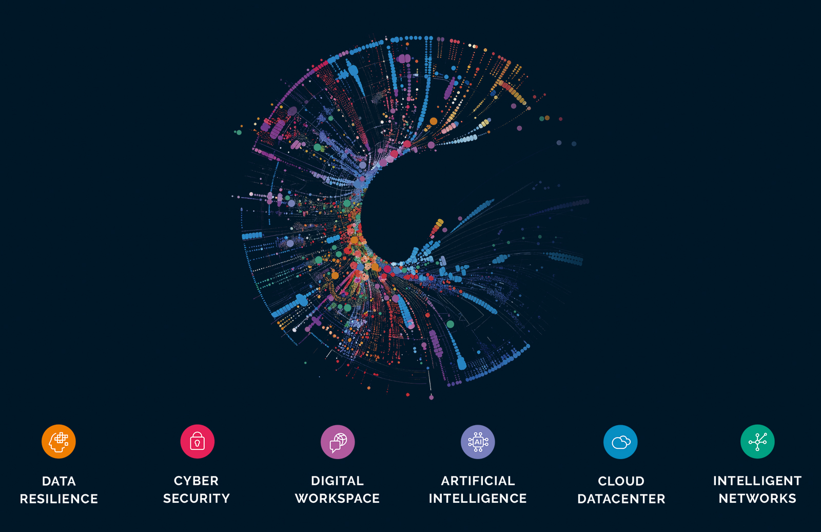 En el área del puesto de trabajo digital pone el énfasis en torno a entornos de trabajo flexibles, conectados y preparados para la innovación continua gracias a la hiperautomatización, puestos digitales e híbridos, la necesaria experiencia de usuario, la virtualización y las comunicaciones unificadas como servicio.